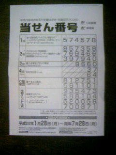 まちの文房具屋さん行ったら、お年玉付年賀はがきの当せん番号が置いてあった。