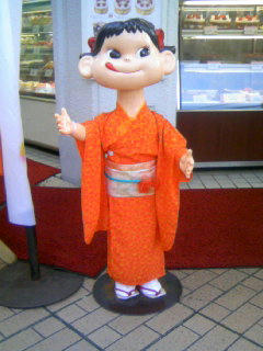 今日、お散歩の途中で見掛けたペコちゃんの全身像は…。